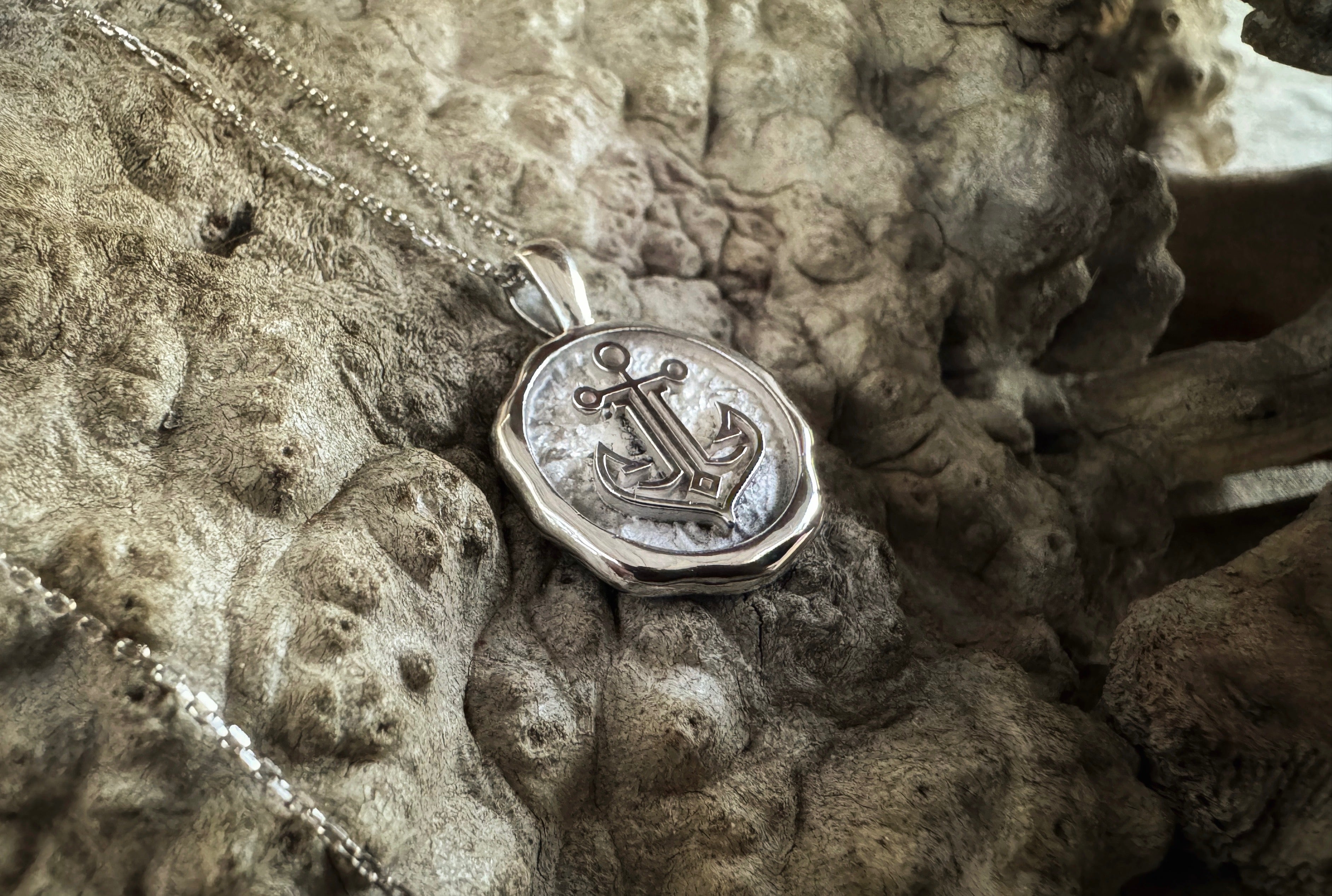 Made with adventure in mind, the Rove Medallion is the perfect companion for all of your wanderings. Medallion is 3/4" from top to bottom, has some presence, and is strung on an 18" sterling silver curb chain.
