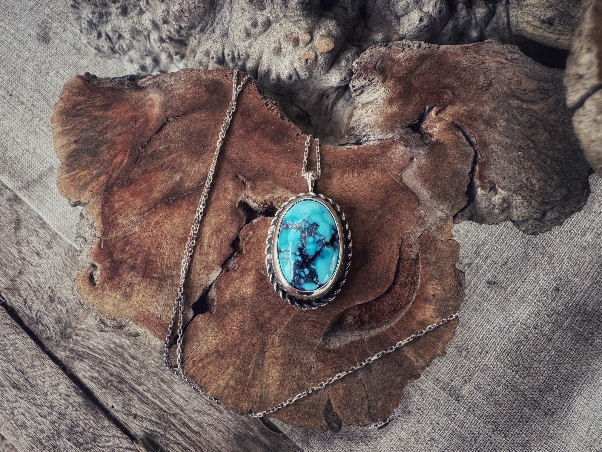 Golden Hills turquoise set in sterling silver on a 18" sterling silver chain